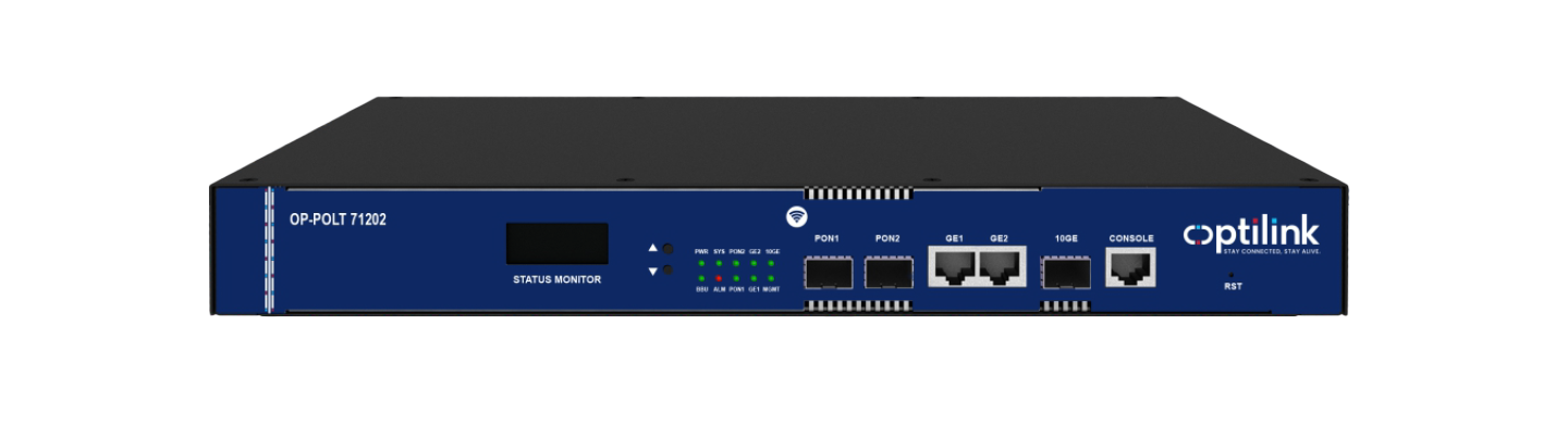 GPON OLT OP-POLT 71202 completely meets the relative standard of ITU G.984.x and FSAN, the device with 2 uplink Ethernet ports and 1×10 Gigabit Uplink uplink port and GPON port.