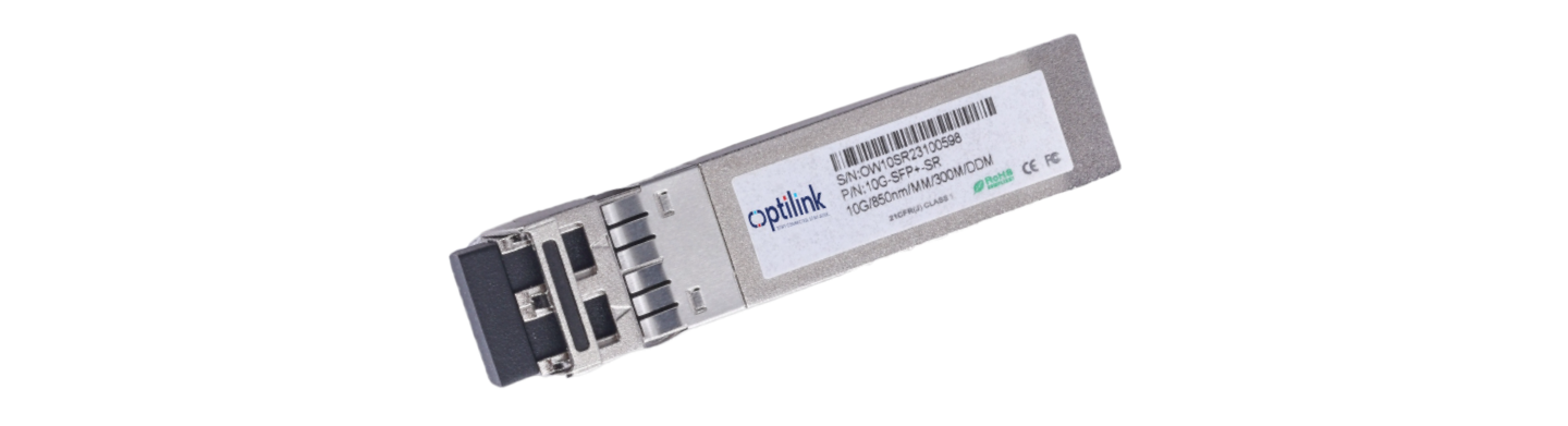 The product features an SFP+ with an LC connector, equipped with an 850nm VCSEL laser, designed for low EMI and enhanced ESD protection. It is IEC-60825 laser safe and fully compliant with RoHS and SFF-8472 standards.